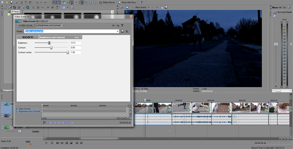 This was fixed by changing the brightness and contrast settings. The brightness was decreased to -0.25 and the contrast centre was increased to 1.00. This added a different edge to the sequence as it suddenly become a lot more threatening and a lot more stylised. This works brilliantly for the purposes of my Thriller as the lower brightness sets an unnerving tension for the audience in a highly subtle manner.